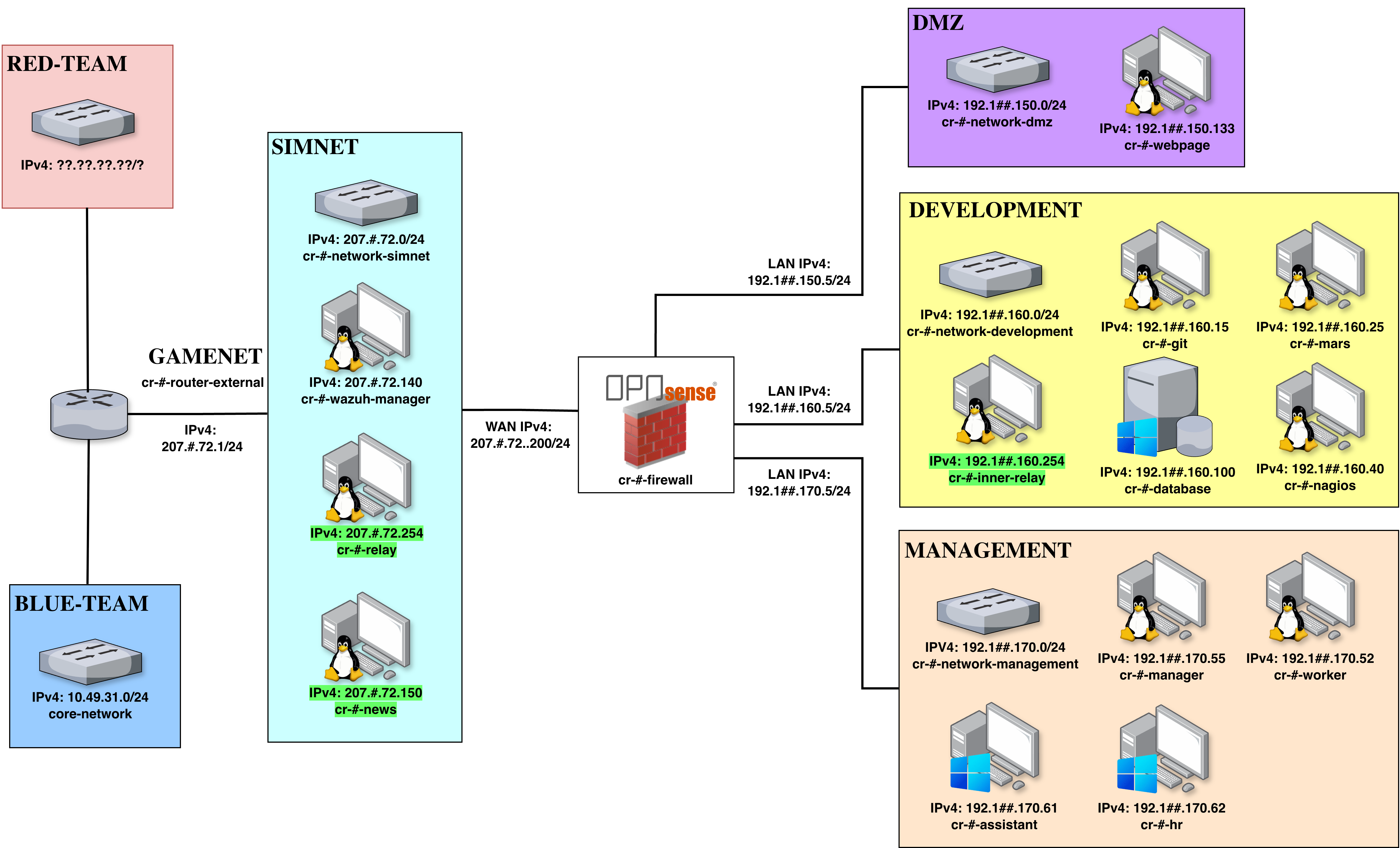 Zöld gépek — A cr-#-relay, cr-#-news, cr-#-inner-relay kritikus elemek. Hiba → #help-desk.